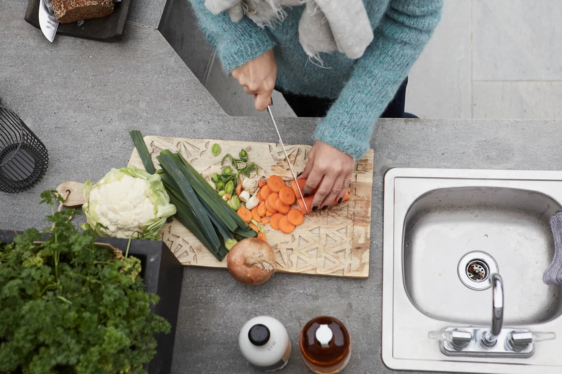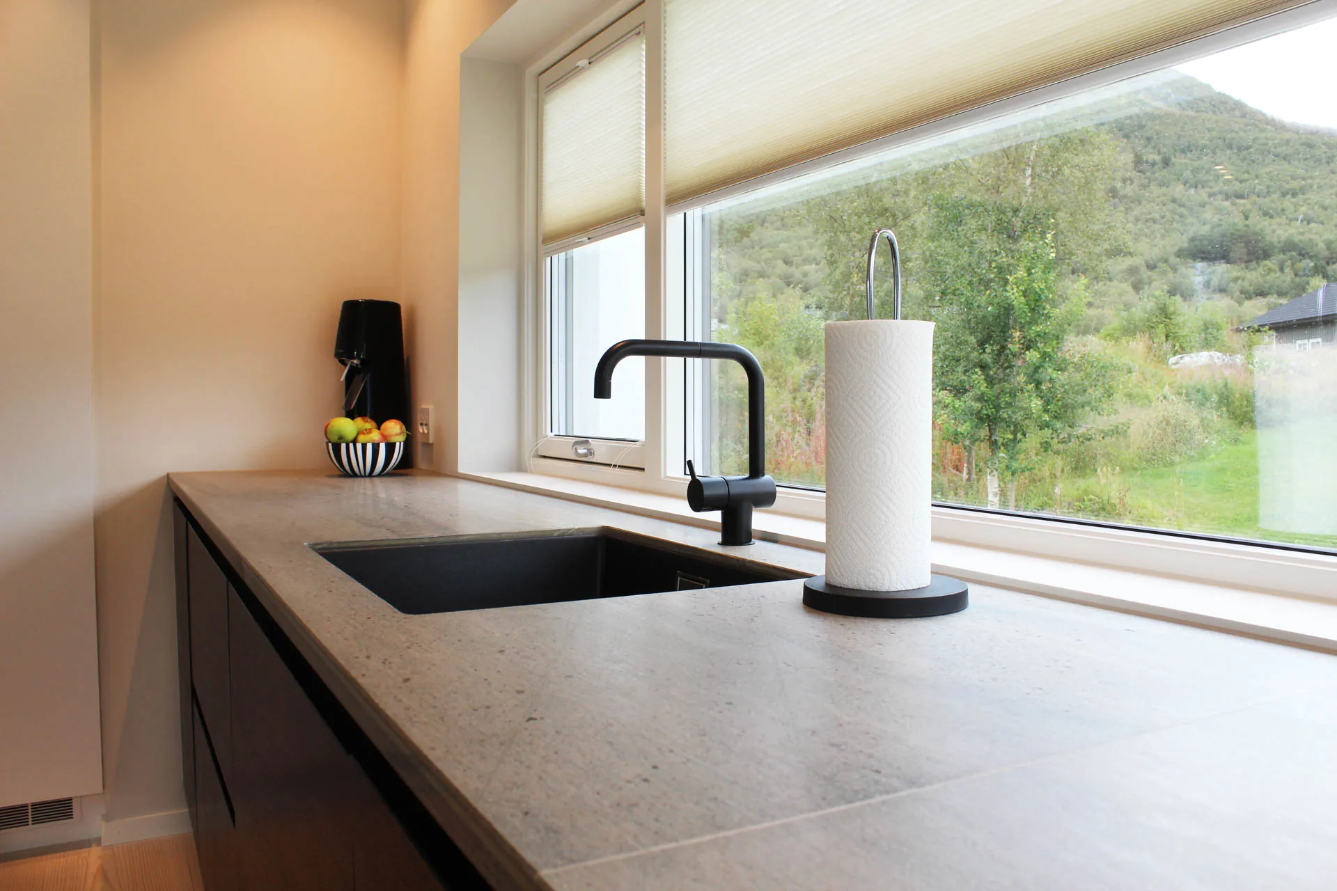En heltäckande skifferplatta har naturliga färgskiftningar och unika linjer som speglar hur stenen formats under miljontals år. Skiffern är särskilt vacker som bänkskiva i köket, runt eldstaden eller ovanpå muren, men fungerar lika bra där du vill ha ett hållbart och vackert material som tål höga temperaturer och är enkelt att hålla rent.